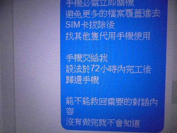 【粉絲專頁】Apple蘋果iPhone 7→128GB智慧型手機的LINE聊天對談記錄~先刻意封鎖某人帳號後再刪除訊息→後續涉及某些問題~想救回刪除的聊天對談記錄當佐證→將SIM卡拔出找其他隻代用手機使用~新北市板橋區-張小姐【費用問題電話中報價】