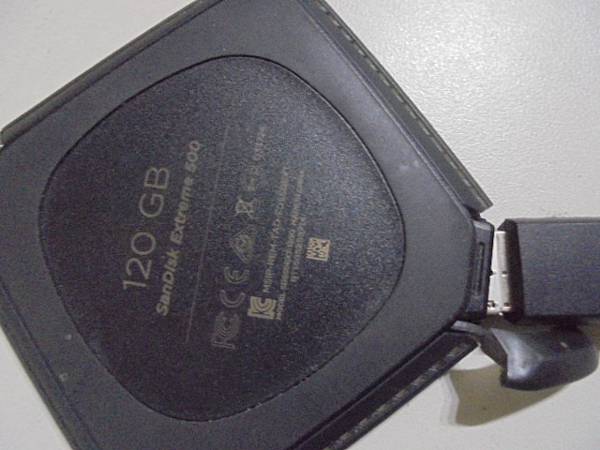 【完修帶回】SanDisk晟碟Extreme 500行動SSD固態硬碟120GB~可攜式SSD硬碟Micro USB 3.0接座不慎拉壞→導致無法存取進銷存檔案~要修好USB接座救出進銷存檔案→行動SSD固態硬碟翻回背面~新北市三重區-張小姐【接座隨著USB 3.0傳輸線掉落】