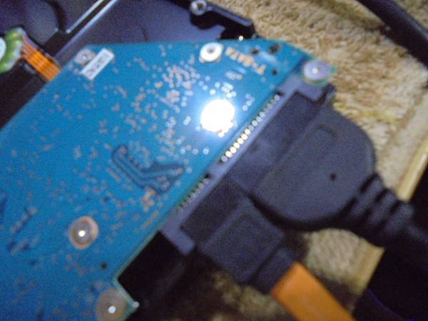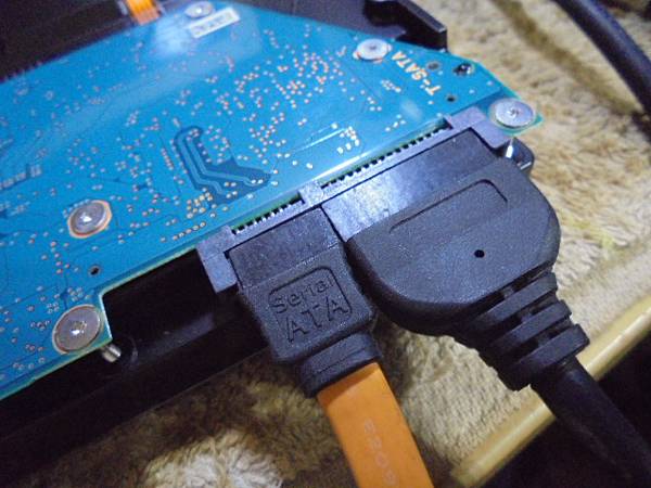 【著急詢問】TOSHIBA東芝4TB→3.5吋裸碟當資料碟使用~自己不慎折斷SATA訊號接座7Pin塑膠片後無法使用→surveillance監控~要修好硬碟SATA接座取出重要檔案→將裸碟置平後電路板面朝上~桃園市中壢區-黃先生【插上SATA電源線碟盤已經轉動】