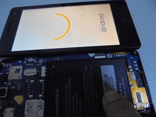【留機維修】TWM台灣大哥大Amazing A5S→8GB智慧型手機被水潑到後螢幕沒畫面~來電響鈴聲音正常→詢問多家維修公司都說不修低階手機~要修好這隻手機繼續使用LINE→以手指頭壓住電池不讓電池彈出~新北市新店區-陳先生【螢幕持續正確顯示】