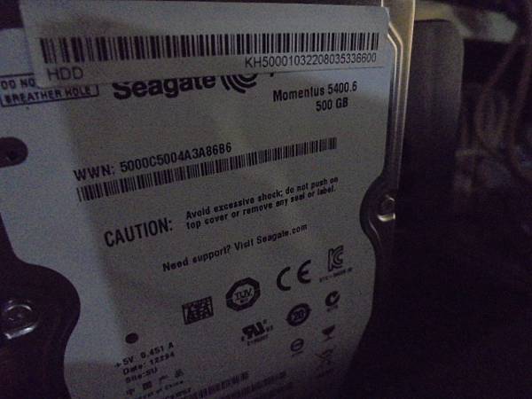 HGST昱科500GB SATA~硬碟裝在ASUS華碩筆記型電腦→貓咪曾於NB上跳躍~經華碩判定硬碟讀取異音無能力處理→已救回工作圖檔~由硬碟座上拔出→新北市中和區-盛小姐【HGST昱科500GB硬碟7mm】