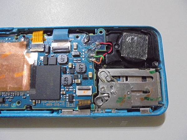 SAMSUNG三星YP-T9 2GB~MP4已經使用多年→感覺所有功能按鍵都不靈敏~按下時都沒有動作→想修好MP4繼續做使用~剝開控制開關上的感應壓片→新北市中和區-游先生【感應壓片翻至背面】