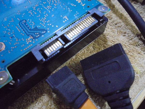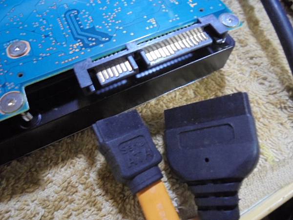 【現場更換】TOSHIBA東芝4TB→3.5吋裸碟當資料碟使用~自己不慎折斷SATA訊號接座7Pin塑膠片後無法使用→surveillance監控~已更換硬碟SATA接座取出重要檔案→SATA電源線與SATA訊號線~桃園市中壢區-黃先生【由剛更換好的SATA代用接座拉出】