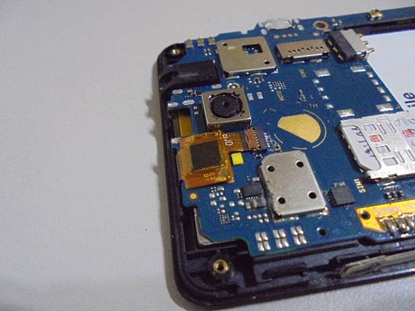 【購二手機】TWM台灣大哥大Amazing A5S→8GB智慧型手機被水潑到後螢幕沒畫面~來電響鈴聲音正常→詢問多家維修公司都說不修低階手機~要修好這隻手機繼續使用LINE→已將螢幕損壞手機的主機板~新北市新店區-陳先生【平穩的放在二手螢幕上】