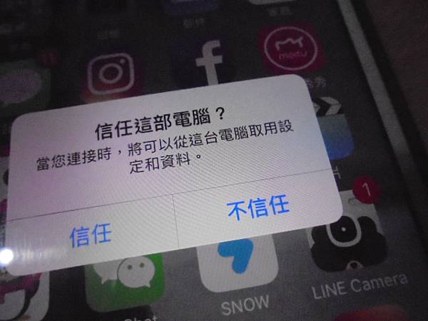 【確認問題】Apple蘋果iPhone 7~128GB智慧型手機的LINE聊天對談記錄→先封鎖某人LINE帳號後再刪除訊息~後續涉及某些問題→想救回刪除的聊天對談記錄當佐證~當您連接時將可以從這台電腦取用設定和資料→新北市板橋區-張小姐【點選信任】
