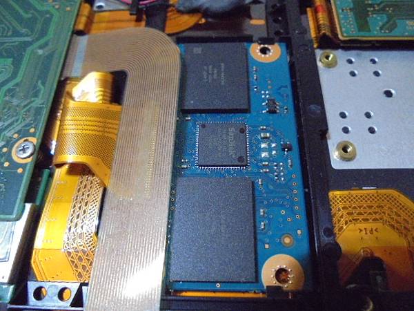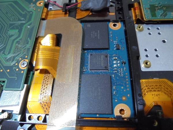 【轉接方式】SONY索尼VPCX118LW→筆記型電腦原廠搭載CE/ZIF介面SSD硬碟~但64GB容量不夠使用→超愛這部極致輕薄又方便攜帶外出簡報的NB~要改裝更高容量SSD→打開原廠背蓋找到SSD固態硬碟的位置~臺北市羅斯福路-林先生【被壓在排線下方】