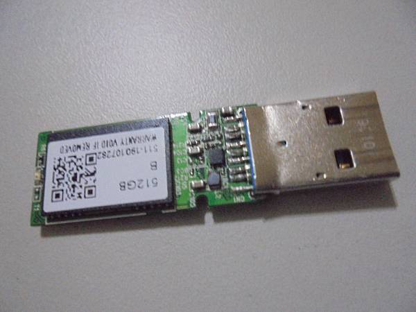 【外殼已丟】白牌-不知名品牌512GB→USB 3.0隨身碟插在電腦讀取時撞壞USB接頭~已在剛撞壞時將所有檔案取出→隨身碟讀取時有時無~仍想將USB接頭修復繼續使用→目視電路板背面與正面分析與推測~新北市板橋區-鐘先生【應為SP廣穎的隨身碟】