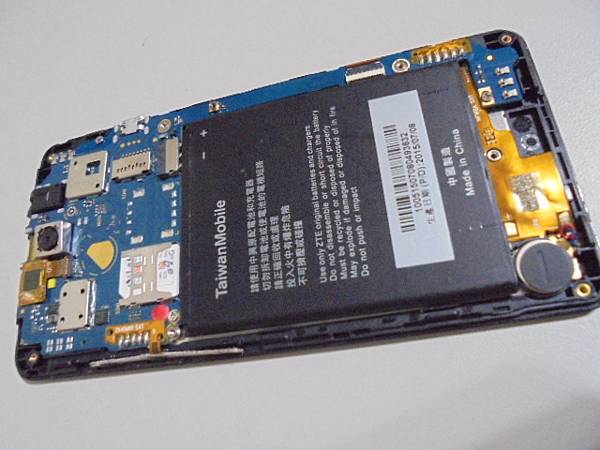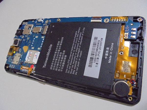 【嚴重氧化】TaiwanMobile台灣大哥大A5S~8GB智慧型手機被水潑到後螢幕轉黑屏→有來電聲音與簡訊通知聲音~多家維修公司都拒修A5S手機→已修好手機繼續使用LINE~將手機翻至背面→新北市新店區-陳先生【調整電池與與電路板電池接點可接觸】