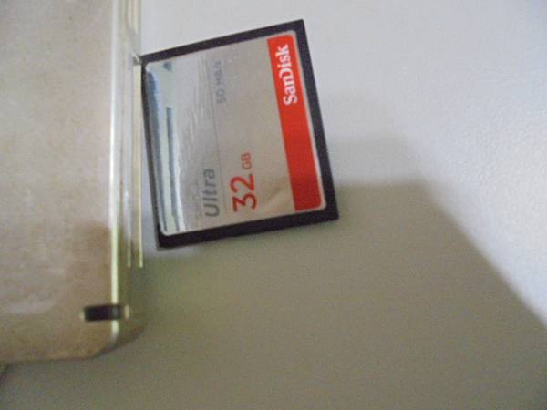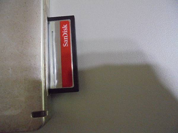 【現場檢測】SanDisk晟碟CF記憶卡32GB→裝在Canon佳能EOS單眼相機5D II~上午拍攝了幾百張照片→記憶卡插讀卡機連接蘋果電腦讀取卻沒有檔案~已救回JPEG相片→由讀卡機插槽裏~新北市板橋區-林小姐【拉出SanDisk晟碟Compact Flash記憶卡】
