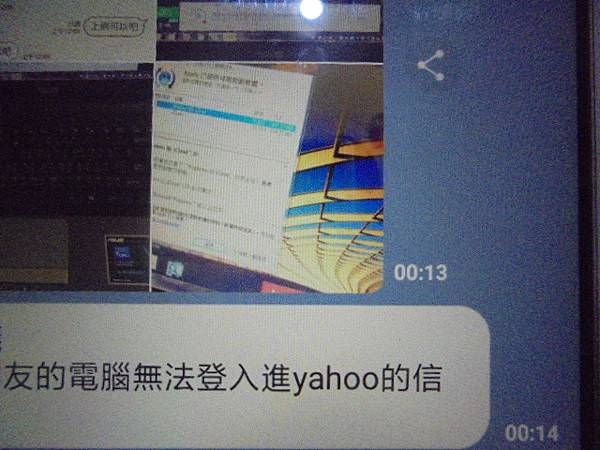 【LINE詢問】ASUS華碩U31S筆記型電腦→用來做線上學習卻無法登入Yahoo雅虎奇摩WebMail郵件~可正常在iPhone使用App版信箱→想測試無法登入信箱原因並解決~凌晨於LINE傳來雙方對話與筆電4張照片→新北市板橋區-吳小姐【再以文字說明情況】