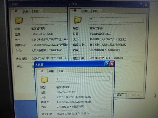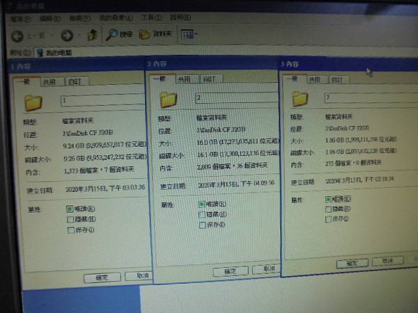 【現場檢測】SanDisk晟碟CF記憶卡32GB→裝在Canon佳能EOS單眼相機5D II~上午拍攝了幾百張照片→記憶卡插讀卡機連接蘋果電腦讀取卻沒有檔案~已救回JPEG相片→點選開啟3個救出的檔案資料夾比對~新北市板橋區-林小姐【數量與容量均不相同】