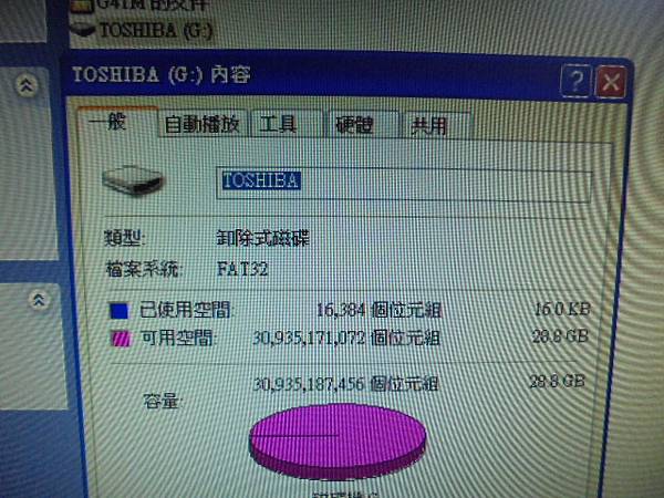 【現場複製】podio百剛BA-205隨身2GB音樂棒La new~是家人在使用但已損壞很久→遍尋不著可以維修解決方式~家裏電腦也讀不到這個裝置→已取出音樂棒裏MP3檔案~TOSHIBA卸除式磁碟機→新北市板橋區-陳同學【已使用空間16KB可用空間28.8GB】