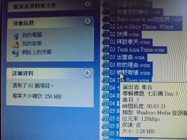 【存隨身碟】podio百剛BA-205隨身2GB音樂棒La new→是家人在使用但已損壞很久~遍尋不著可以維修解決方式→家裏電腦也讀不到這個裝置~已取出音樂棒裏MP3檔案→點擊全選所有MP3檔案→新北市板橋區-陳同學【選取了61個項目/檔案大小256MB】