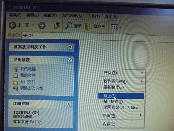 【滿意帶回】podio百剛BA-205隨身2GB音樂棒La new~是家人在使用但已損壞很久→遍尋不著可以維修解決方式~家裏電腦也讀不到這個裝置→已取出音樂棒裏MP3檔案~滑鼠點進TOSHIBA(G:)~新北市板橋區-陳同學【滑鼠右鍵工具列左鍵點選貼上(P)】
