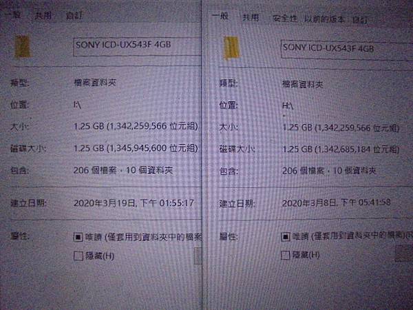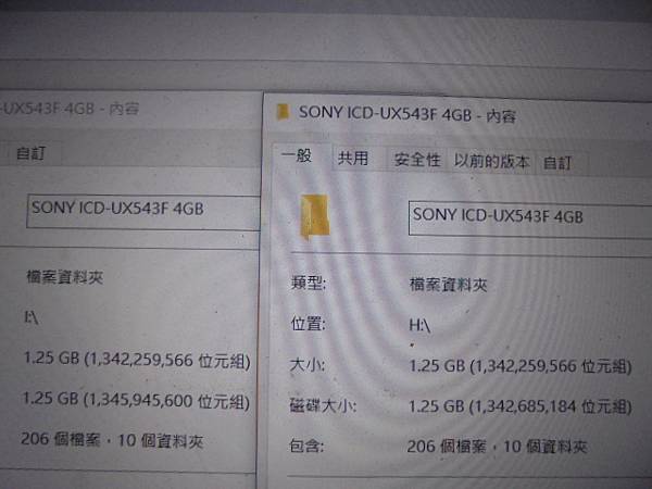 【檔案救回】SONY索尼4GB~ICD-UX543F錄音筆連接電腦讀不到裝置→無法傳輸檔案亦無法充電~錄音筆已耗完電量無法開機→已救回錄音筆內建記憶體的重要錄音檔案~比對(H)(I)二個資料夾皆1.25GB→臺北市松江路-邵小姐【206個檔案10個資料夾】 【設法維修】SONY索尼ICD-UX543F→4GB錄音筆連接電腦讀不到裝置~無法傳輸檔案亦無法充電→錄音筆已耗完電量無法開機~已救回錄音筆內建記憶體的重要錄音檔案→SONY ICD-UX543F 4GB大小1.25GB~臺北市松江路-邵小姐【206個檔案10個資料夾】