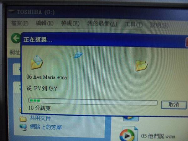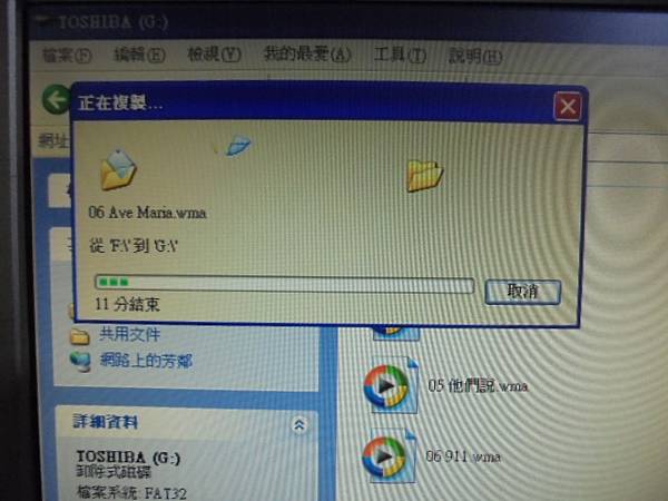 【現場複製】podio百剛BA-205隨身2GB音樂棒La new~是家人在使用但已損壞很久→遍尋不著可以維修解決方式~家裏電腦也讀不到這個裝置→已取出音樂棒裏MP3檔案~正在複製從F:\到G:\11分結束→新北市板橋區-陳同學【06 Ave Maria.wma】