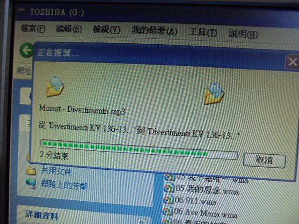 【滿意帶回】podio百剛BA-205隨身2GB音樂棒La new~是家人在使用但已損壞很久→遍尋不著可以維修解決方式~家裏電腦也讀不到這個裝置→已取出音樂棒裏MP3檔案~正在複製Mozart-Divertimento.mp3 2分結束~新北市板橋區-陳同學【2分結束】