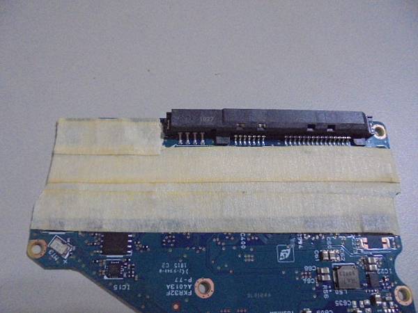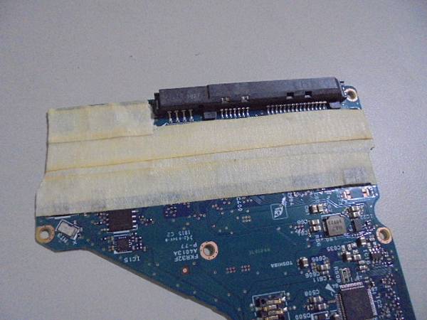 【來電詢問】TOSHIBA東芝8TB→3.5吋裸碟為系統區與兩個資料區~第一次插拔就折斷SATA訊號接座7Pin塑膠片→企業級硬碟5年保固~已更換代用SATA接座可再使用裸碟→將TOSHIBA 8TB裸碟電路板貼上保護膠帶~新北市淡水區-徐先生【以階梯式貼上】