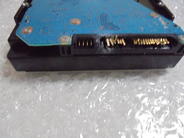 【約定送修】TOSHIBA東芝4TB~3.5吋裸碟為資料碟→更換電源供應器時折斷SATA電源接口15Pin塑膠片~與SATA訊號接口7Pin塑膠片→要修好SATA接座取出檔案資料~將裸碟翻至背面置放在包裝來的氣泡袋上→基隆市七堵區-楊先生【兩組塑膠片均斷】