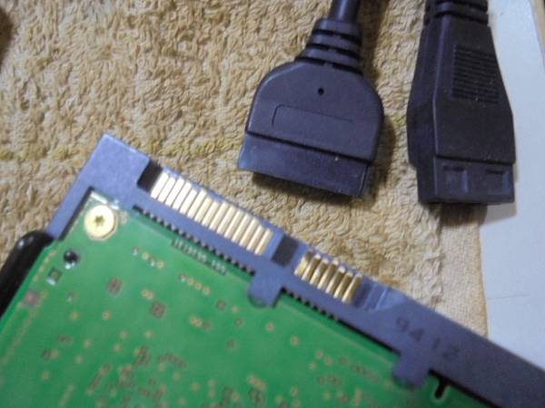 【處理機構】HGST昱科8TB→3.5吋企業級DCHC320硬碟在業主的電腦使用~裝好硬碟後蓋上機殼側蓋→不慎拉到線扯斷SATA訊號接座塑膠片~要修好接座繼續使用HDD→裸碟平放於桌面毛巾上~桃園市蘆竹區-粘先生【插上獨立DC 12V變壓器SATA電源線】