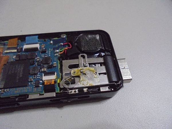 【下班送修】SONY索尼4GB~ICD-UX543F錄音筆之前都是正常使用→忽然USB接頭推出後無法卡住~導致充電與傳輸檔案時USB接頭會縮回→要修好USB接頭無法固定問題~挖開SONY索尼ICD-UX543F錄音筆背蓋→桃園市桃園區-吳先生【挖開記憶卡保護蓋】