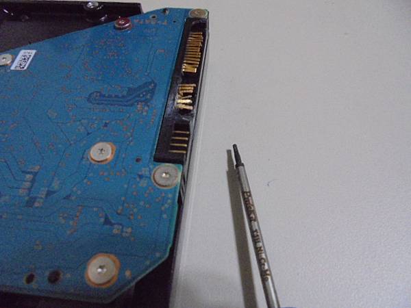 【約定送修】TOSHIBA東芝4TB~3.5吋裸碟為資料碟→更換電源供應器時折斷SATA電源接口15Pin塑膠片~與SATA訊號接口7Pin塑膠片→要修好SATA接座取出檔案資料~取專用星型起子→基隆市七堵區-楊先生【依序鬆開固定硬碟電路板的七顆星型螺絲】