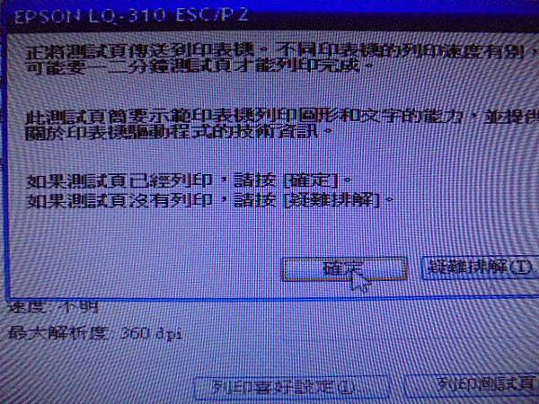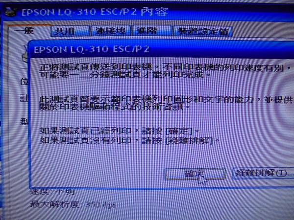 【現場重灌】ASUS華碩PBH61/USB3主機板~組裝桌上型PC使用的裸碟→因為使用多年後老化損壞~到府判定原因後不建議維修→已更換SSD固態硬碟並安裝作業系統~EPSON LQ-310 ESC/P2→新北市板橋區-王小姐【正在將測試頁傳送到印表機>點選確定】