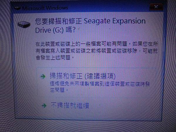 【檔案消失】Seagate希捷Expansion→4TB外接式硬碟USB 3.0連接電腦儲存工作備份~檔案資料夾無故消失→送附近修電腦店家都無法處理~要救回硬碟裏工作圖檔→您要掃描和修正Seagate Expansion Drive (G)嗎~桃園市龜山區-楊小姐【自動播放】