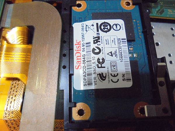 【ZIF介面】SONY索尼PCG-2111P~筆記型電腦原廠搭載SSD硬碟CE/ZIF介面→但64GB容量不夠使用~超愛這部極致輕薄又方便攜帶外出簡報的NB→已改裝更高容量SSD~關機後筆電蓋上螢幕翻至背面拔出硬碟排線→臺北市羅斯福路-林先生【SanDisk SSD】