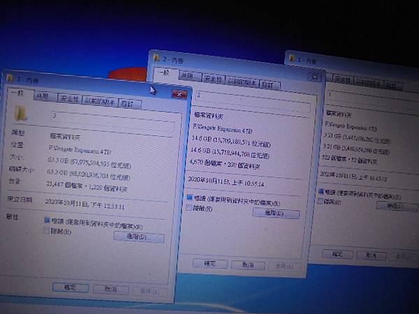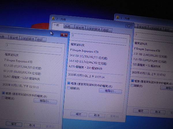 【檔案消失】Seagate希捷Expansion→4TB外接式硬碟USB 3.0連接電腦儲存工作備份~檔案資料夾無故消失→送附近修電腦店家都無法處理~要救回硬碟裏工作圖檔→模擬救援方式的3個資料夾~桃園市龜山區-楊小姐【同時展示容量大小與檔案數量】