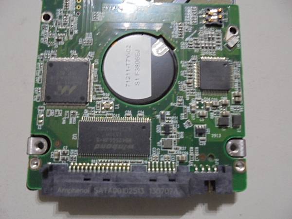 【101年客戶】WD威騰750GB→2.5吋BLACK黑標裸碟裝在MacBook電腦安裝系統使用~突然故障後通電發出異音→寄給中部朋友檢測後無法處理~要救回硬碟裏美工圖檔→將WD威騰2.5吋黑標主機板翻至正面→新北市板橋區-李先生【目視電路板並無焦黑】