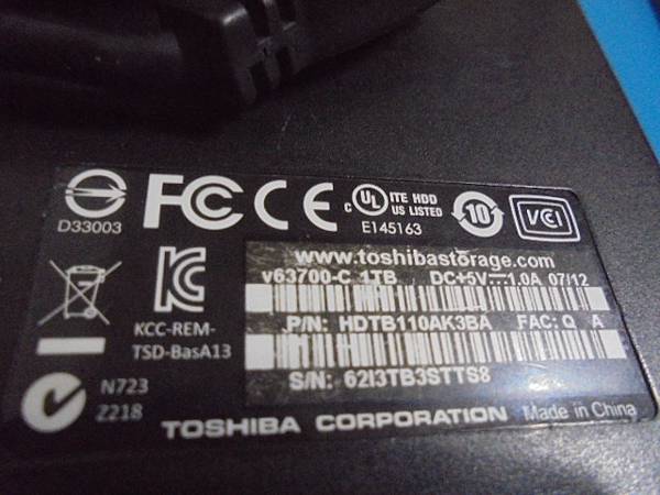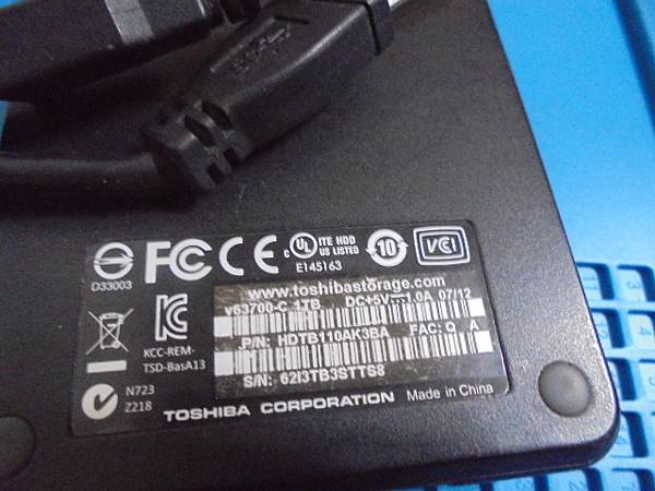 【接座掉落】TOSHIBA東芝A1外接式CANVIO硬碟1TB→Micro USB 3.0接座不慎折到傳輸線後脫落~導致無法讀取HDD硬碟→要救回行動硬碟裏存十多年的工作檔案資料~多項安規認證圖示v63700-C 1TB→新北市板橋區-陳先生【DC+5V 1.0A出廠月年07/12】 【接座掉落】TOSHIBA東芝A1外接式CANVIO硬碟1TB→Micro USB 3.0接座不慎折到傳輸線後脫落~導致無法讀取HDD硬碟→要救回行動硬碟裏存十多年的工作檔案資料~多項安規認證圖示v63700-C 1TB→新北市板橋區-陳先生【DC+5V 1.0A出廠月年07/12】
