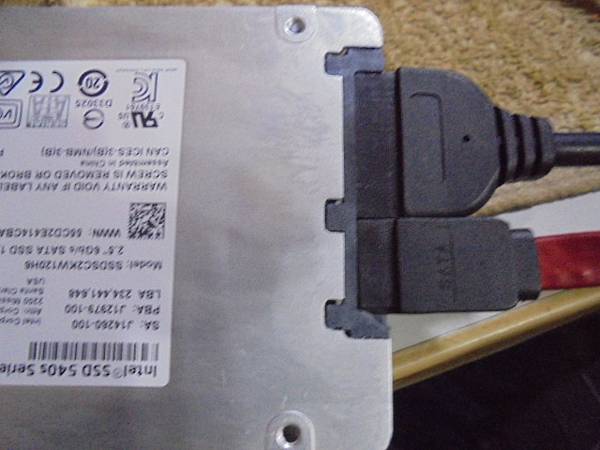 【雙碟對拷】Intel英特爾540s~120GB固態硬碟SSD裝在公司的電腦使用→買新硬碟要做更換時~不慎拉到線扯斷SATA訊號接座塑膠片→已修好接座看到桌面上的檔案~將SATA轉USB的轉接裝置USB端→臺北市忠孝東路-楊先生【連接技嘉主機板USB接座】