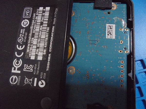 【讀取正常】TOSHIBA東芝1TB外接式BASICS硬碟A1~不慎壓到未拔除的傳輸線導致Micro USB 3.0接座脫落→無法讀取HDD硬碟→要救出行動硬碟儲存的工作檔案資料~取工具劃開TOSHIBA東芝A1行動硬碟底蓋→新北市板橋區-陳先生【客戶有己自行拆殼】