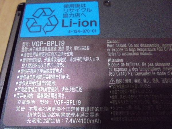 【ZIF介面】SONY索尼PCG-2111P~筆記型電腦原廠搭載SSD硬碟CE/ZIF介面→但64GB容量不夠使用~超愛這部極致輕薄又方便攜帶外出簡報的NB→已改裝更高容量SSD~取SONY索尼VGP-BPL19原廠電池→臺北市羅斯福路-林先生【電池額定值7.4V/4100mAh】