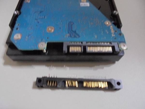 【更換接座】TOSHIBA東芝4TB→3.5吋裸碟為資料碟~更換電源供應器時折斷SATA訊號接口7Pin塑膠片→與SATA電源接口15Pin塑膠片~已更換SATA接座正確存取檔案→因為折斷塑膠片而拆下的SATA接座~基隆市七堵區-楊先生【與完修的SATA接座比對】