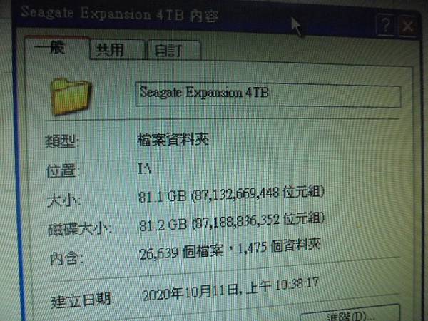 【留碟救援】Seagate希捷Expansion~USB 3.0外接式硬碟4TB連接電腦儲存工作備份→檔案資料夾無故消失~送附近修電腦店家都無法處理→已救回硬碟裏工作圖檔~滑鼠點選Seagate Expansion 4TB資料夾→桃園市龜山區-楊小姐【磁碟大小:81.2GB】