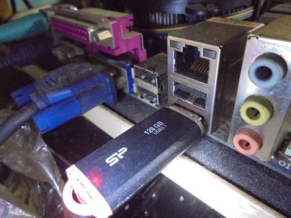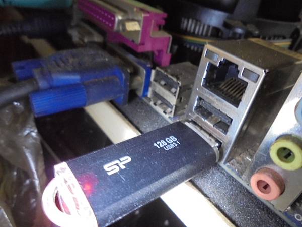 【通電發燙】SP廣穎Blaze B02~USB 3.1隨身碟128GB先前均正常讀取使用→突然讀不到USB裝置但有閃紅燈~網路找到我的維修救援記錄→要救回隨身碟裏相片檔案~將隨身碟插上GIGABYTE技嘉主機板接座→臺南市新化區-張先生【碟身閃爍通電紅燈】