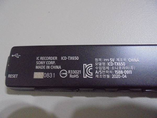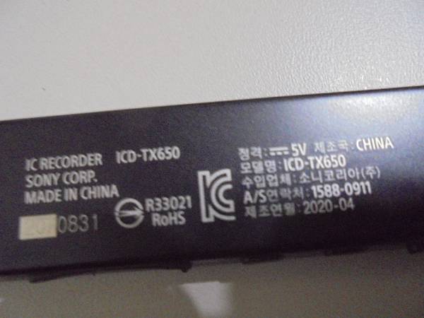 【寄便利帶】SONY索尼ICD-TX650→16GB錄音筆被液體潑到時還能正常使用~耗完電後滑動POWER鍵無法開機→連接電腦讀不到裝置/無法充電~要修好錄音筆繼續使用→IC RECORDER ICD-TX650 RoHS~臺北市金山南路-黃小姐【MADE IN CHINA 2020-04】