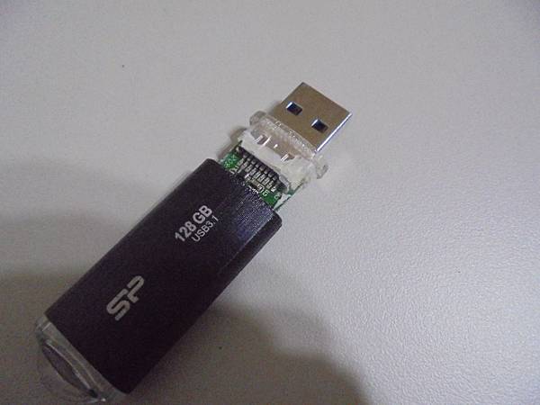 【通電發燙】SP廣穎Blaze B02~USB 3.1隨身碟128GB先前均正常讀取使用→突然讀不到USB裝置但有閃紅燈~網路找到我的維修救援記錄→要救回隨身碟裏相片檔案~取工具設法由金屬碟身拉出黏的超緊的透明機構件→臺南市新化區-張先生【有齒痕】