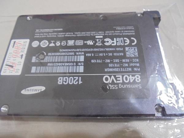 【著急詢問】SAMSUNG三星840 EVO→120GB為開機SSD硬碟~清理PC電源供應器時SATA電源接口突然燒焦變黑→SATA電源15Pin接座焦黑~已修好SSD桌面檔案全數存在→將新的硬碟外接盒裝進原廠透明塑膠袋~臺北市涼州街-王先生【滑進原廠包裝紙盒】