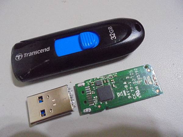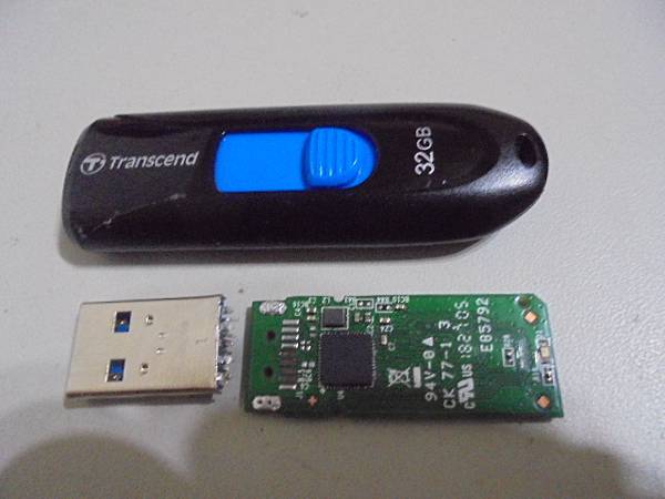 【開貨車來】Transcend創見790→32GB隨身碟USB 3.0插在桌上型電腦使用~不小心撞斷USB接頭導致無法讀取→幫忙朋友送維修救援~要救回隨身碟裏所有工作檔案→電路板上的主控晶片完整未受損~新北市汐止區-曾小姐【已瞭解該怎麼做維修處理】