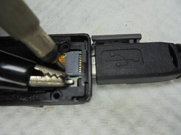 【拆殼判定】SONY索尼ICD-UX560F→4GB錄音筆先前正常使用~突然插USB接孔沒充電反應→撥動電源鍵也無法開機~要修好不能開機問題→救出內建記憶體錄音檔案~備A型USB轉接座→新北市新莊區-盧先生【套入SONY索尼ICD-UX560F錄音筆USB接頭】