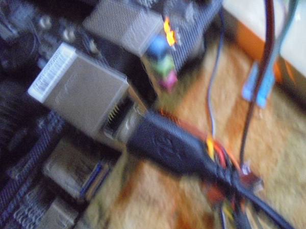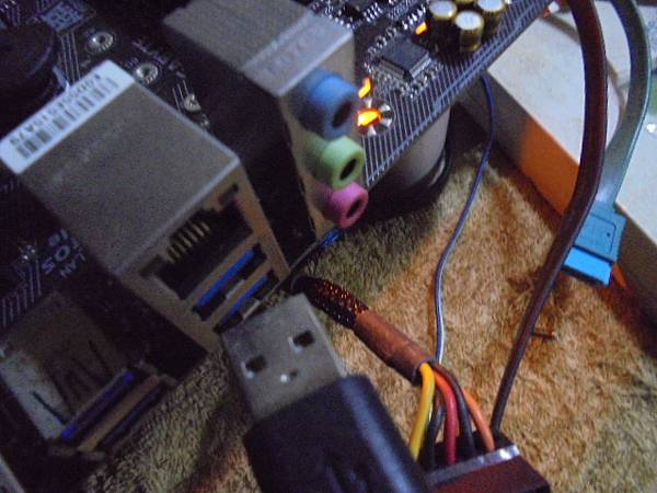 【完修取回】HGST昱科8TB~3.5吋企業級DCHC320硬碟在業主的PC使用→裝好硬碟後蓋上機殼側蓋~不慎拉到線扯斷SATA訊號接座塑膠片→特別處理SATA接座擋片機構~把SATA轉接模組傳輸線的USB端→桃園市蘆竹區-粘先生【接上GIGABYTE技嘉主機板】