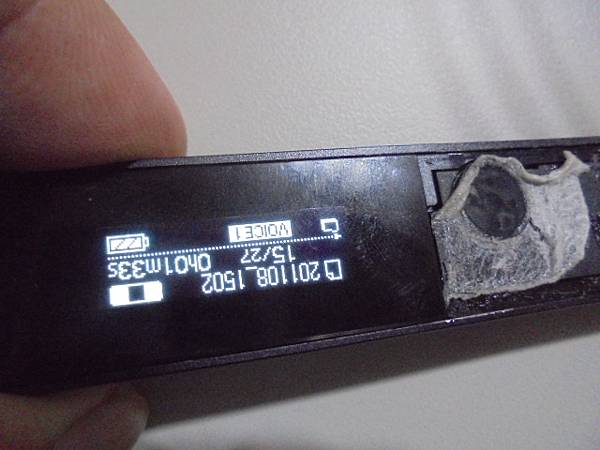 【處理鏽蝕】SONY索尼ICD-TX650→16GB錄音筆被液體潑到後還能正常使用~耗完電後滑動POWER鍵無法開機→連接電腦讀不到裝置/無法充電~要修好錄音筆繼續使用→選擇跳過後進入錄音PLAY播放畫面~臺北市金山南路-黃小姐【VOICE1電池電量已滿】