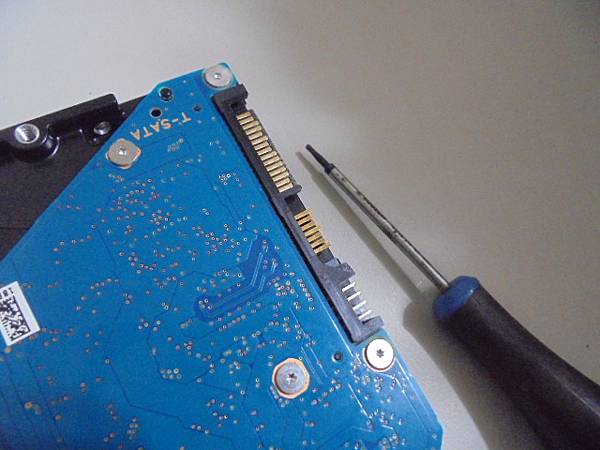 【更換接座】TOSHIBA東芝4TB→3.5吋裸碟為資料碟~自行拆換硬碟時折斷SATA訊號接口7Pin塑膠片→導致這顆資料硬碟無法讀取使用~要更換SATA接座正確存取檔案→已備妥星型起子~新北市鶯歌區-朱先生【依序鬆開固定電路板的二長五短星型螺絲】