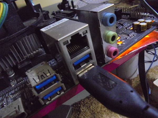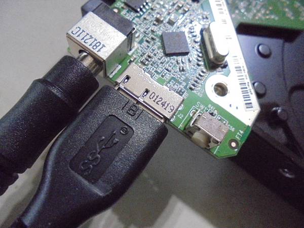 【拆殼檢測】WD威騰Elements Desktop→6TB外接式硬碟USB 3.0先前連接電腦正常使用~突然故障後讀不到磁區→網路找到我有救援經驗~要救回硬碟裏的工作檔案→將USB 3.0傳輸線插轉接模組~新北市板橋區-呂先生【傳輸線USB端連接技嘉主機板】