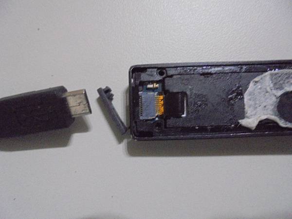 【拆殼判定】SONY索尼16GB~ICD-TX650錄音筆被液體潑到時還能正常使用→耗完電後滑動POWER鍵無法開機~連接電腦讀不到裝置/無法充電→已修好錄音筆正常使用~由SONY索尼ICD-TX650錄音筆→臺北市金山南路-黃小姐【拔出Micro USB充電傳輸線】