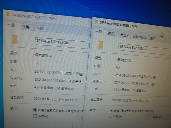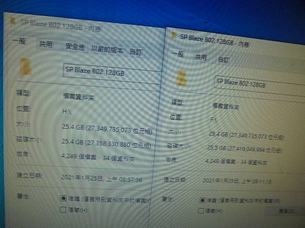 【修復救出】SP廣穎Blaze B02→128GB隨身碟USB 3.1先前均正常讀取使用~忽然讀不到USB裝置但有閃紅燈→網路找到我的維修救援記錄~已救回隨身碟裏照片檔案→複製完成後比對兩邊~臺南市新化區-張先生【檔案數量/資料夾數量/磁碟大小相同】