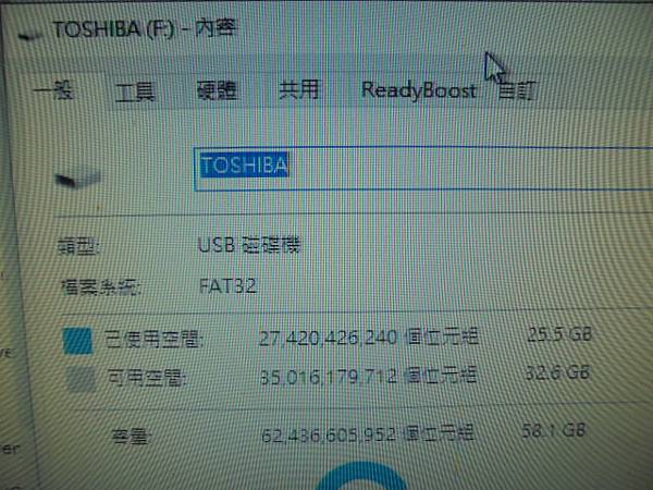【裝入新碟】SP廣穎Blaze B02~USB 3.1隨身碟128GB先前均正常讀取使用→突然讀不到USB裝置但有閃紅燈~網路找到我的維修救援記錄→修復隨身碟相片完整存在~TOSHIBA(F:)共58.1GB→臺南市新化區-張先生【已使用空間25.5GB可用空間32.6GB】